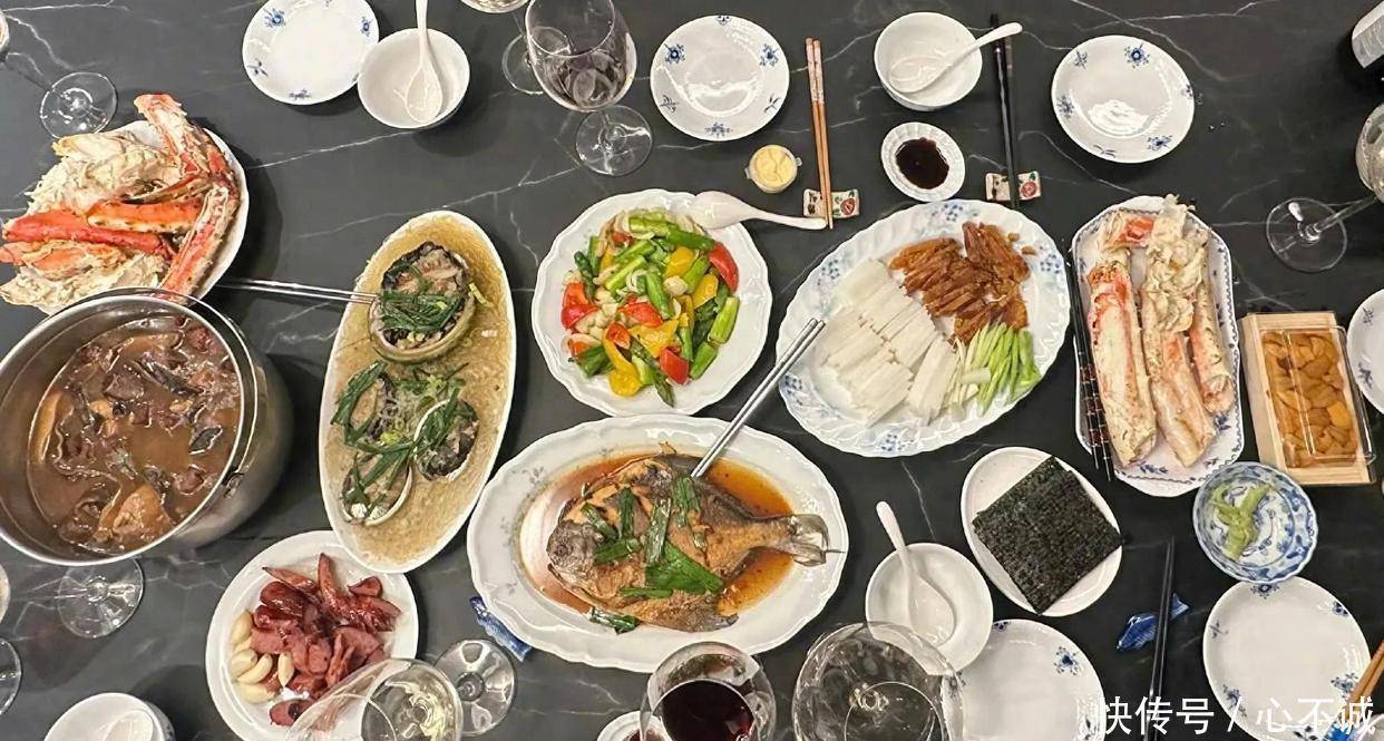 春晚一完张钧甯就回台湾了。她和家里人一块儿过年。初一晚上挺晚了,她在网上发了几张照片。照片里是家里人吃饭的场面。桌上菜不少。有鱼。有汤。酒也摆上了。她还从北京带了烤鸭回去。桌子那头还放着海苔跟芥末。各家吃的东西不一样。做的菜也都不一样。