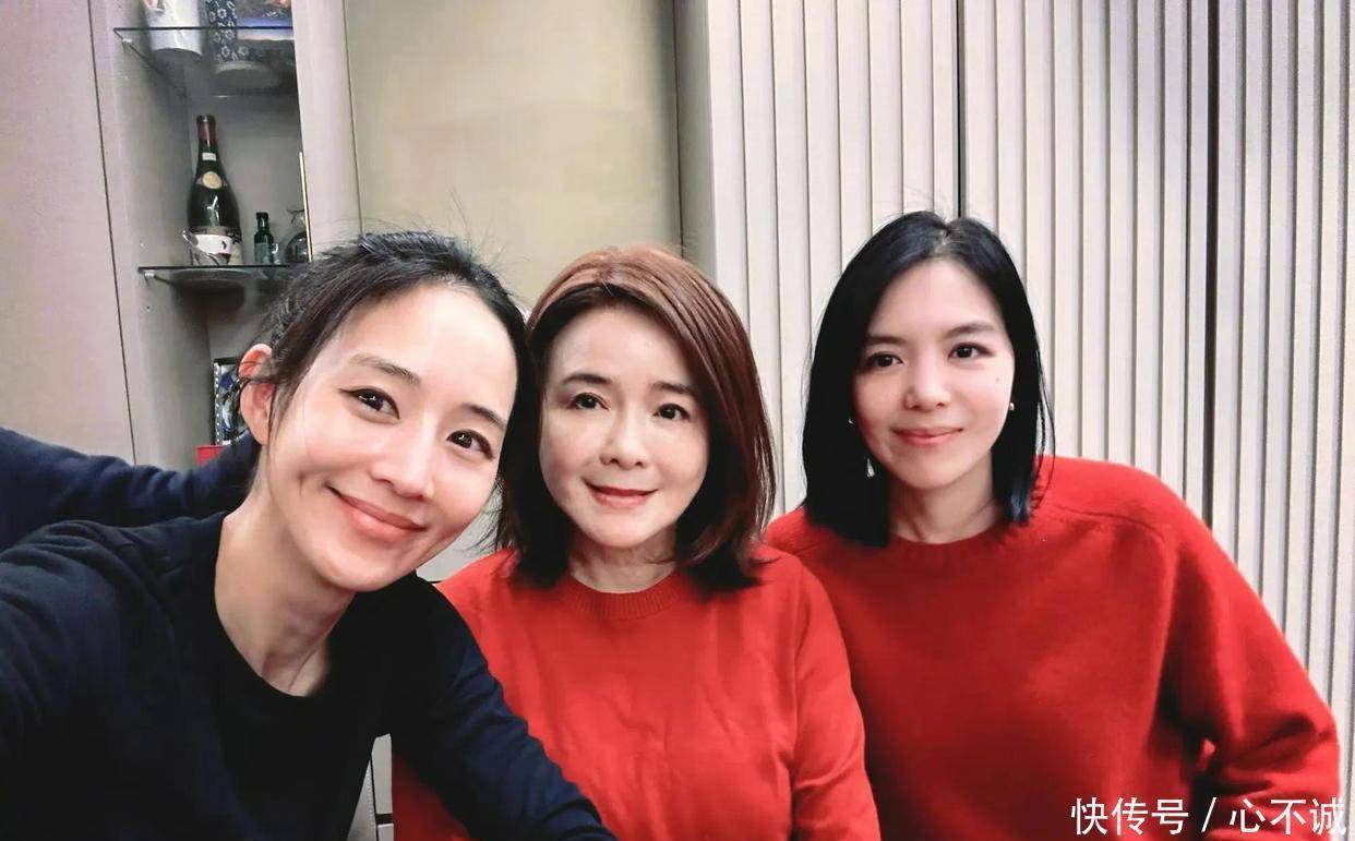 母女三人每年都要一起拍张照片。张钧甯的妈妈和姐姐都很好看。姐姐没当演员,她在时尚圈做事,干的是专业工作。张钧甯边上还坐着个朋友,没拍到脸。那人手放在她头发上,动作很轻。他俩衣服是配对的。张钧甯看着镜头,笑得很开心。